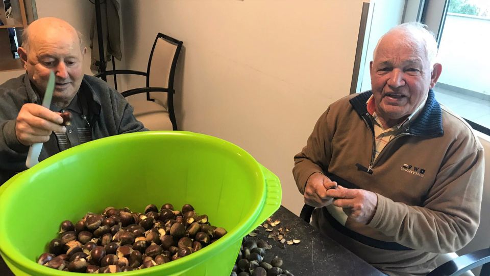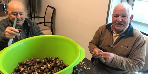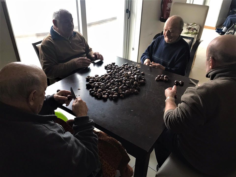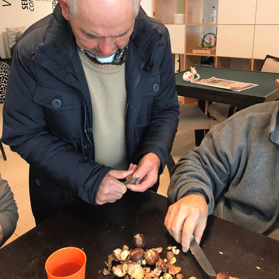 Os nossos seniores, começaram bem cedo a festejar o S. Martinho. A primeira coisa que fizeram foi, colocar mãos à obra e preparar a verdadeira da castanha para  lanche que se realizara durante a tarde.